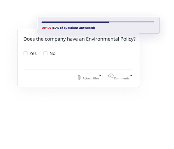 The company (user) completes a questionnaire with questions about the measures it has taken to demonstrate performance with ESG criteria.
